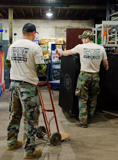 At Camo Crew Responsible Junk Removal, we handle industrial cleanups fast and safely. Our experienced crew shows up ready to clear it out, no matter the size of the space. You point, we haul, and we don’t just dump and go.